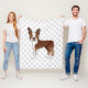 L'illustration originale de Destei d'un mignon chien de race Boston Terrier en couleur rouge et blanche. L'arrière - plan a un motif d'empreintes de pattes de chien gris.
