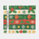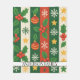 Une couverture de vacances conviviale et festive avec des rayures rouges et vertes avec des éléments de couleur aquarelle, des accents de pin et de baies, des ornements, des étoiles, des flocons de neige et un flair botanique. Parfait pour la décoration d'hiver et d'automne avec une touche de charme d'inspiration vintage.