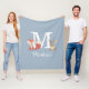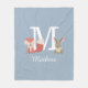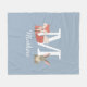 Couverture en polaire bleue mignonne avec un renardeau et un lapin bébé de la forêt de bois de chaque côté du monogramme et du nom. Conçu par Thisisnotme©
