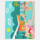 Cette couverture en toison Retro Gay Pool Party propose quatre beefcakes à l'ancienne, gays, qui battent la chaleur de Palm Springs en se prélassant autour de l'eau bleu turquoise de leur piscine en forme de boomerang atomique. L'architecture moderne du milieu du siècle sur la fabuleuse maison en pierre orange est clairement une propriété de premier choix, vu la vue sur les montagnes de l'arrière - plan. Un soleil d'étoile jaune brille dans le ciel turquoise pour que vous puissiez voir tous les détails charmants, depuis les flamants roses kitsch jusqu'à la clôture rayée des blocs bruns des années 50. Et bien sûr ce que Palm Springs House serait complet sans palmier ?