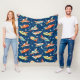 Retro Space Rocket Cars Blue Cute Kids Motif Personnalisé Nom Fleece Couvertures comporte un mignon motif de voitures de fusée de rythme en bleu rouge, jaune et blanc sur un arrière - plan bleu. Parfait pour les chambres pour enfants. Personnalisez en modifiant le texte dans la zone de texte fournie. Conçu par ©Evco Studio www.zazzle.com/store/evcostudio