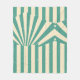 Cette oeuvre présente un design rétro saisissant avec des rayures rayonnantes et audacieuses dans une palette de couleurs turquoise et crème. Le motif de démarrage central est accentué par des lignes angulaires et des formes géométriques, créant un sentiment de mouvement et d'énergie. La texture usée et affaissée ajoute une sensation vintage, rappelant les vieilles affiches ou la signalisation. De petites étoiles et des points éparpillés dans le design rehaussent son esthétique nostalgique et dynamique, ce qui en fait une pièce visuellement attrayante.