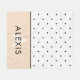 Cette couverture élégante et chic est ornée de pois noirs et blancs, avec une bordure inférieure rose vif. Personnalisez avec votre nom et votre initiale.