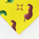 Une couverture en toison dessinée avec mon illustration de piments rouges et verts avec un soleil Zia au centre d'eux.