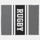 Cette conception sportive et sportive présente du texte en RUGBY gras à l'intérieur d'une bande de course en noir et blanc surlignée contre des bandes extérieures grises. Le texte de cette conception peut être personnalisé.