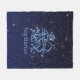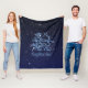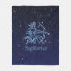 Une couverture en toison avec le symbole de Sagittarius en bleu argenté doux, recouverte d'étoiles de la constellation, contre un arrière - plan ciel étoilé classé de bleu nuit profond à noir.