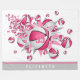 La couverture en toison à thème de basketball de cette fille cool présente une "explosion" de boules de basket roses et blanches de tailles différentes et des formes d'étoiles grises et roses - l'étoile rose a un petit motif de pois blancs - personnaliser avec le nom du joueur et le numéro de maillot - katz_d_zynes