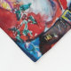Peinture acrylique colorée, capricieuse et artistique, Père Noël joue du violon dans la nuit d'hiver enneigée, une chouette, ornements floraux, plantes d'hiver, baies sèches dans des couleurs rouge vif, vert, blanc, bleu, jaune. par Bulgan Lumini (c)