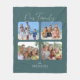 Un design simple pour présenter vos photos de famille sur cette couverture en toison. Le design offre de l'espace pour 4 images accentuées avec écriture manuscrite qui dit : Notre famille. Une couverture turquoise foncée personnalisée avec votre nom de famille. La couleur arrière - plan peut être changée en couleur foncée.