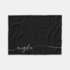 Moderne minimaliste personnalisée petite couverture en toison pour elle. La signature girly moderne dispose d'une belle police calligraphie blanche alignée à gauche et élégante avec des queues décoratives glamour. Vous pouvez customiser l'arrière - plan noir solide à votre couleur préférée. Il peut y avoir quelques noms courts ou longs qui vous demanderont d'augmenter ou de diminuer la taille de la police pour garder les swashes qui se déversent du bord avec cet effet délicat.