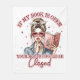 Illustration de charme montrant une femme avec son doigt sur ses lèvres tenant un livre ouvert. Le texte coloré dit : "Si mon livre est ouvert, votre bouche devrait être fermée". Ce design est disponible sur une grande variété de produits.