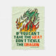 Si vous ne pouvez pas prendre la chaleur, ne chatouillez pas le dragon. La parodie drôle d'énonciation au lieu de dire "sortent de la cuisine". Avec les flammes de soufflement d'un feu de dragon vert. Conception humoristique de slogan d'amusement.