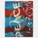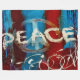 Le signe de paix peint avec l'éclaboussure de la peinture et le texte de paix et signent dedans la couleur bleue, rouge et blanche