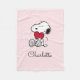 Wrap your little one in sweet affection with this Snoopy Heart Baby Blanket. Featuring Snoopy happily clutching a red heart against a soft pink backdrop, this plush item is a perfect blend of nostalgic charm and cozy comfort. It's an ideal gift for a new arrival, baby shower, or just for snuggling. This blanket is fully customizable in the text area, allowing you to personalize it with the baby's name or a special message for a truly unique touch. It's a cherished keepsake designed for tummy time, stroller naps, or adding a loving statement piece to the nursery decor.