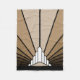 Un motif classique de style art déco. Un motif emblématique du soleil se levant derrière un bâtiment en forme d'art déco stylisé. Un design simple mais élégant, fidèle à l'époque.