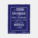 Couverture douce molle avec une prière d'une manière encourageante pour tout enfant (Joshua 1 : 9) ; Soyez fort et courageux, ne soyez pas effrayé ou découragé, parce que le seigneur votre Dieu sera avec vous partout où vous allez. La couverture est la copie blanche sur le bleu marine, et prépare pour personnaliser avec le nom et l'anniversaire de l'enfant. Message le concepteur si vous préférez d'autres couleurs.