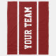 This fun athletic design features white bold text ready to personalize, inside white center stripes against deep red background. The colors and text in this design can be personalized.