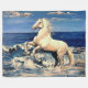 Couverture Polaire Stalion blanc, cheval andalou dans l'océan/paysage