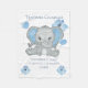 Cette adorable couverture bébé d'éléphant bleu et gris sera adorée pour les années à venir. Personnalisez-le avec votre nom de bébé et vos statistiques de naissance.