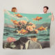 Couverture Polaire Surreal Portrait With Goldfish Flowers And Ocean