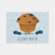 Blanche en polaire avec muffin bleu souriant et bleuets sur un arrière - plan bleu clair. La conception inclut les mots "muffin bleuet" et les mots peuvent être customisés.