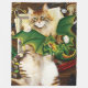 Un chat à cocon orange principal et un petit dragon vert qui roulait pleuraient ensemble sur une table. Autour d'eux se trouvent des dés, des échecs, de l'épée de runes et d'autres fournitures de jeux.