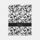 Un motif noir et blanc repéré de fourrure dalmatienne de chien. Une bannière noire avec les points et le texte blancs fonctionne à travers. Le texte peut être customisé.