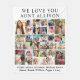Un collage photo blanc personnalisé pour une tante préférée avec 30 photos de ses nièces, neveux, famille, animaux domestiques, etc., une ou deux lignes de texte, comme "nous vous aimons tante", et vos noms en typographie élégante.