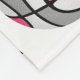 Cette jolie couverture en toison à thème de basket présente les images réalistes de boules de basket qui ont alternativement des panneaux rose, blanc et gris disposés dans un motif miroir incliné - l'expression "Le terrain de basket est mon endroit heureux" dans une police manuscrite décontractée en bandes grises entre les rangées angulaires de boules de basket - le nom de l'athlète peut être personnalisé sur une couleur rose de bande angée similaire - arrière - plan personnalisable blanc - par katz_d_zynes
