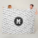 Cette jolie couverture en toison sur le thème du football pour les filles comporte le texte "Le terrain de football est mon endroit heureux" dans une police manuscrite décontractée avec des formes de coeur en noir modelé en diagonale sur un arrière - plan blanc - personnalisez avec son nom et son monogramme ou lettre de varsity sur un pendentif grand cercle - arrière - plan, pendentif de cercle, et couleur de texte personnalisée peuvent être changés en N'IMPORTE QUELLE couleur qui contraste avec le texte noir motif - katz_d_zynes