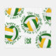 Cette couverture en toison à thème volleyball cool comporte 5 volleyball vert, or et blanc arrangés aléatoirement avec le texte, "Le terrain de volleyball est mon endroit heureux" en or encerclant chaque volleyball dans une police typographique amusante, le tout sur un arrière - plan blanc - son nom et son numéro de maillot sont personnalisables - par katz_d_zynes