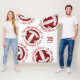 Cette jolie couverture en polaire à thème volleyball comporte 5 volleyball rouge et blanc arrangés aléatoirement avec le texte "Le terrain de volleyball est mon endroit heureux" en rouge encerclant chaque volleyball dans une police typographique de style amusant écrit à la main, le tout sur un arrière - plan blanc - les panneaux rouges de volleyball sont mélangés avec un motif floral artsy, girly - son nom et jerjerer numéro de sey personnalisables - par katz_d_zynes