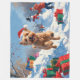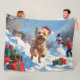 Couverture Polaire Terrier rouillé en neige avec Casquette de Noël