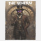 Step into a world of cog and consequence with "THE GENERAL." This artwork showcases a sharp-dressed, dark-skinned steampunk hero armed and ready against a backdrop of intricate clockwork and fog. With his iconic top hat, glowing blue gem, and cigar, he embodies confident, stylish innovation.