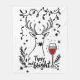 Un design de Noël amusant et gai présente le contour d'un cerf entouré de flocons de neige et de branches de fougères. À côté des branches se trouve un verre de vin rouge. Le texte écrit à la main dit, "Tipsy et brillant." Ce design est présenté sur une variété de produits, ce qui en fait un cadeau parfait pour les amateurs de vin.