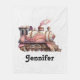 Couverture avec une illustration cool. Un moteur de train rose mignon et capricieux. Des bouffées de fumée rose sortent de sa cheminée.