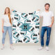 Cette jolie couverture en toison à thème volleyball présente un motif en miroir de volleyball turquoise, noir et blanc avec l'expression "Le terrain de volleyball est ma place heureuse" dans une police manuscrite décontractée avec des formes cardiaques dans un étirement turquoise entre les rangées angulaires de volleyball - nom de l'athlète et monogramme peut être personnalisé sur le grand pendentif du cercle - arrière - plan blanc est personnalisable - remplacer facilement le monogramme par la lettre de variabilité ou le numéro de maillot du joueur - par katz_d_zynes