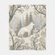 Cette couverture de forêt d'hiver sereine est entourée d'un majestueux loup blanc, entouré d'arbres poussiéreux dans les tons doux de crème, brun, gris et bleu pâle. Un deuxième loup est subtilement niché dans le coin inférieur, ce qui laisse entrevoir une vie invisible dans le bois tranquille. Avec un mélange d'arbres à branches nues et à feuillage persistant, encadrés par des éléments décoratifs délicats, ce design évoque la beauté naturelle, le calme et une touche de magie hivernale. Idéal pour les amoureux de la nature, les amateurs d'animaux et les décors saisonniers ou imaginaires.