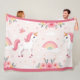 Girly Unicorn All Seasons Blanket avec rêve, jolie terre de rêve Unicorn avec fleurs, arcs-en-ciel et nuages dans des couleurs pastel pâle. Personnalisez le nom (placé dans le nuage) ou supprimez, si vous préférez.
