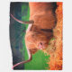 Cette couverture en toison a une vache à longue corne sur laquelle on peut voir.