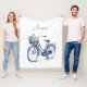 aquarelle peinture d'un vélo avec une corbeille de fleurs dans les couleurs Delft Blue