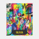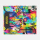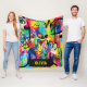 This colorful, personalized blanket features a high-energy abstract art composition that combines bold colors, dripping paint, scribbled lines, and elements of graffiti and pop art.