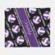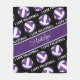 Cette mignonne couverture polaire à thème volleyball pour sa salle de volley présente l'image réaliste d'un volleyball qui a des panneaux violets et blancs modelés à un angle avec la police sportive phrase de texte "I love volleyball" en blanc qui s'étend entre les rangées anglisées de volleyballs - les panneaux violets de volleyballs sont mélangés avec un motif kaleidoscopique girly pour une apparence textuelle - personnalisez son nom dans une police manuscrite sophistiquée sur une bande de couleur violet à rondelle pleine largeur - l'arrière - plan est noir personnalisable - par katz_d_zynes