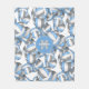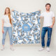 Cette ludique équipe couleurs volleyball flece couverture pour filles dispose d'un motif de volleyball stylisé bleu clair, gris et blanc de différentes tailles tournées partout sur un arrière - plan blanc personnalisable - les panneaux bleu et gris de volleyballs sont mélangés avec un motif floral girly - personnalisez avec le nom de l'athlète et le numéro monogramme ou jersey - par katz_katz d_zynes