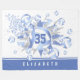 Cette couverture polaire à thème volleyball girly dispose d'une "explosion" de taille variée volleyballs bleu et blanc et de formes étoiles bleues, grises et blanches sur un arrière - plan noir personnalisable - personnaliser avec le nom de l'athlète et le numéro de maillot - les panneaux volleyball bleu et gris sont mélangés avec un motif kaleidoscopique girly floral pour une apparence texturée, motif pois blanc surplombe l'étoile bleue - par katz_d_zynes