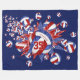 Cette couverture en toison à thème volleyball de fille cool présente une "explosion" de volleyball rouge, blanc et bleu de taille variée et des formes étoile rouge, blanc et bleu sur un arrière - plan bleu foncé personnalisable - personnaliser avec le nom de l'athlète et numéro de maillot - les panneaux rouge et bleu des volleyballs sont mélangés avec un motif kaleidoscopique girly floral pour texa apparence - par katz_d_zynes