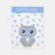 Nom personnalisé Noël Recevant Bébé Couverture polaire, gris et bleu, avec une chouette portant cravate arc et un blazer marine, et flocons de neige bleu. Grand cadeau de Noël pour un bébé garçon, un petit gentleman.
