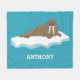 Créez un cadeau personnalisé cool pour quelqu'un qui aime les morses. Cette couverture en toison a une illustration d'un morse flottant sur un morceau de glace ou un iceberg. L'illustration de style réaliste du morse est en marron contre un arrière - plan bleu turquoise. Il est prêt à être personnalisé avec un nom ou un autre texte sous le graphique en lettres blanches.