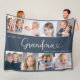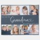 This 8-photo collage modern navy blue fleece blanket features the heartfelt message "We love you, Grandma" with a cute heart, and the name of beloved grandchildren. A thoughtful gift for your grandmother and a lasting keepsake she’ll always treasure. Use the editing tool to change the background colour, adjust the font size and placement.