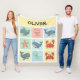Cette adorable couverture en toison personnalisée sur le thème de l'océan présente des gribouillis de baleines, méduses, étoiles de mer et crabes ! Ces motifs ludiques présentent des lignes douces, arrondies et des expressions joyeuses, dressées contre des arrière - plans de couleur pastel comme le vert menthe, le rose bébé, le bleu poudreux et le jaune pâle.